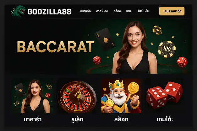 แพลตฟอร์มคาสิโนออนไลน์ Godzilla88 มีเกมคาสิโนยอดนิยมที่หลากหลายให้ผู้เล่นได้เลือกสรร ไม่ว่าจะเป็นบาคาร่า รูเล็ต สล็อต หรือโป๊กเกอร์ แต่ละเกมมีลักษณะเด่นเฉพาะตัวและความท้าทายที่น่าสนใจเพื่อให้ผู้เล่นได้เพลิดเพลินตามความชอบและฝีมือของตนเอง